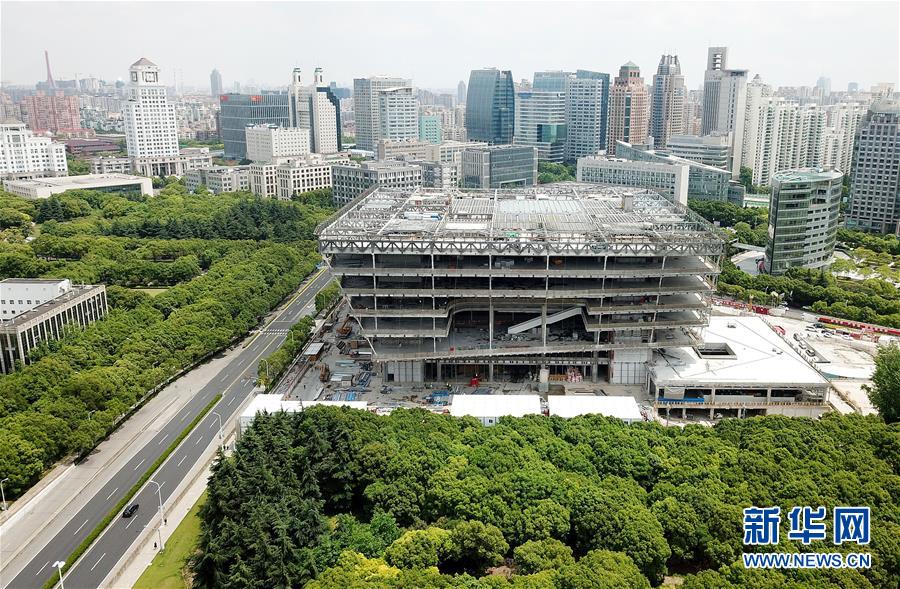 5月22日拍攝的建設(shè)中的上海圖書館東館(無人機照片)。 上海圖書館東館位于上海浦東新區(qū),總建筑面積11.5萬平方米。目前,建設(shè)工程正在緊鑼密鼓地進行,預(yù)計將在2020年內(nèi)竣工,2021年試開放運營。 新華社記者 方喆 攝