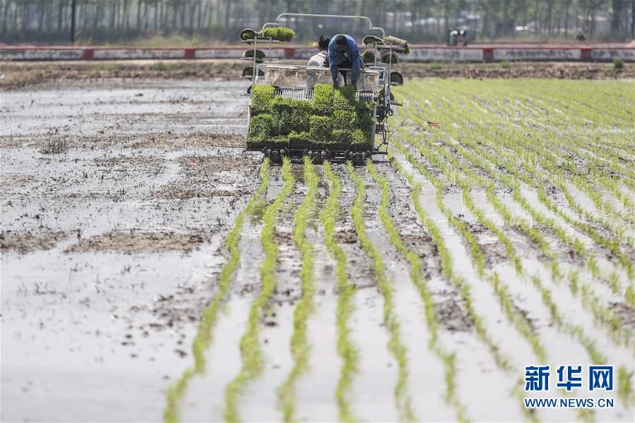 5月24日,盤錦市大洼區(qū)的農(nóng)民在駕駛插秧機(jī)插秧。新華社記者潘昱龍攝