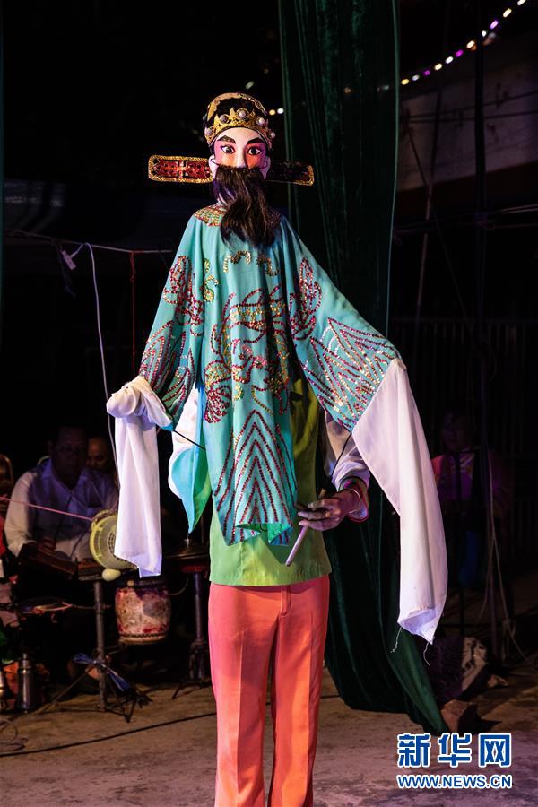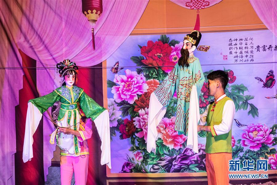 5月24日,海南臨高新風人偶戲團的人偶在舞臺亮相。新華社記者張麗蕓攝