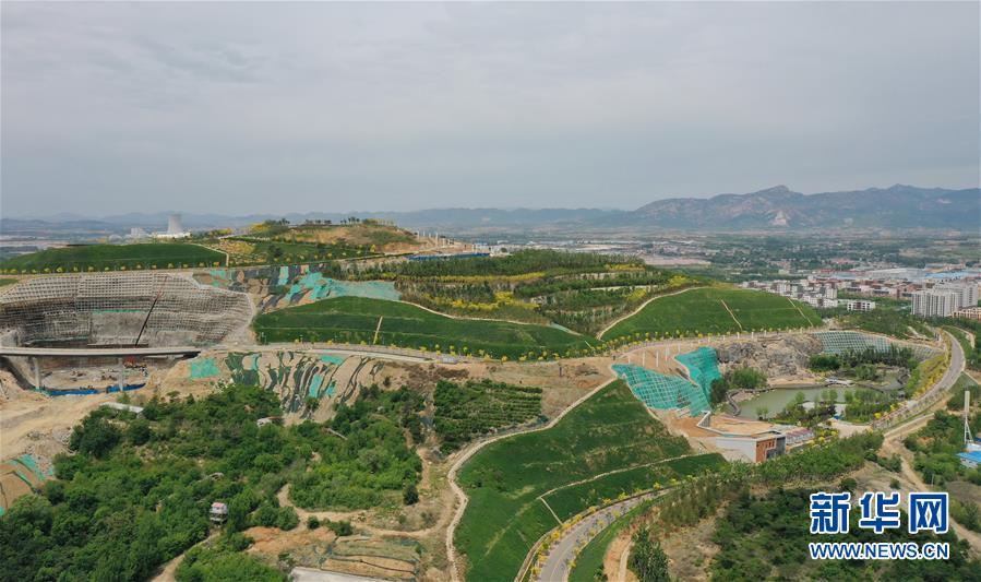 5月25日拍攝的秦皇島經(jīng)濟技術開發(fā)區(qū)棲云山生態(tài)修復工程工地(無人機照片)。