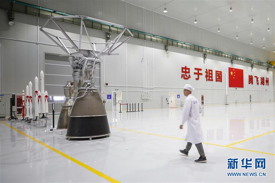 5月26日,工作人員走過藍箭航天智能制造基地發(fā)動機裝配區(qū)。新華社記者張玉薇攝