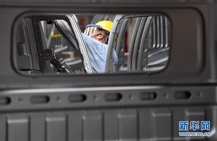 5月26日,工人在江淮汽車新港基地輕卡生產(chǎn)區(qū)內忙碌。新華社記者劉軍喜攝