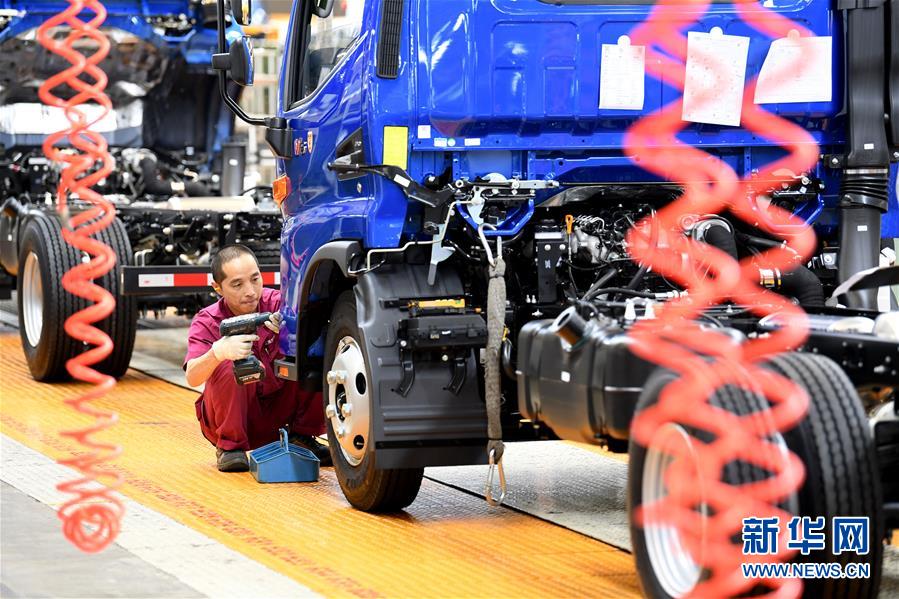 5月26日,工人在江淮汽車(chē)新港基地輕卡生產(chǎn)區(qū)內(nèi)忙碌。新華社記者劉軍喜攝