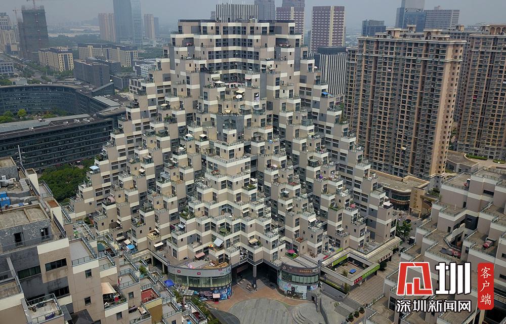 2018年7月29日,航拍江蘇省昆山市花橋國際商務(wù)城游站未來城小區(qū),空中俯瞰,由三棟樓盤組成的該小區(qū)造型奇特,高低錯(cuò)落有致,酷似“金字塔”。