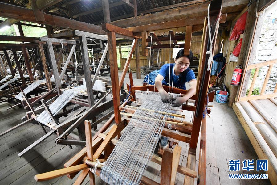 2018年,楊成蘭在村里成立傳統(tǒng)織染合作社,吸引村里及周邊村寨貧困戶入股,帶動(dòng)當(dāng)?shù)刎毨艉痛迕窦尤牒献魃?,從事織布、染布、藍(lán)靛種植等產(chǎn)業(yè),在傳承民族傳統(tǒng)手工技藝的同時(shí),幫助村民脫貧增收。新華社記者楊文斌攝