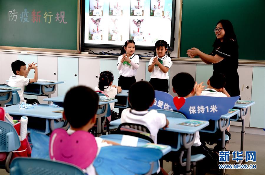 6月2日,上海閔行區(qū)鑫都小學(xué)的學(xué)生走進(jìn)校園。當(dāng)日,上海小學(xué)一、二、三年級(jí)學(xué)生返校開學(xué)。新華社記者張建松攝。