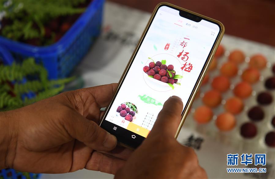 6月3日,在上虞區(qū)驛亭鎮(zhèn),舜利水晶楊梅專業(yè)合作社果農(nóng)在查看自己的電商平臺(tái)楊梅銷售頁(yè)面。近日,浙江紹興上虞區(qū)二都楊梅開(kāi)采。楊梅是上虞區(qū)傳統(tǒng)特色農(nóng)產(chǎn)品,目前上虞區(qū)二都楊梅種植面積1651公頃,年產(chǎn)量1.1萬(wàn)噸,2019年二都楊梅成功申報(bào)國(guó)家農(nóng)產(chǎn)品地理標(biāo)志認(rèn)證。新華社記者翁忻旸攝。