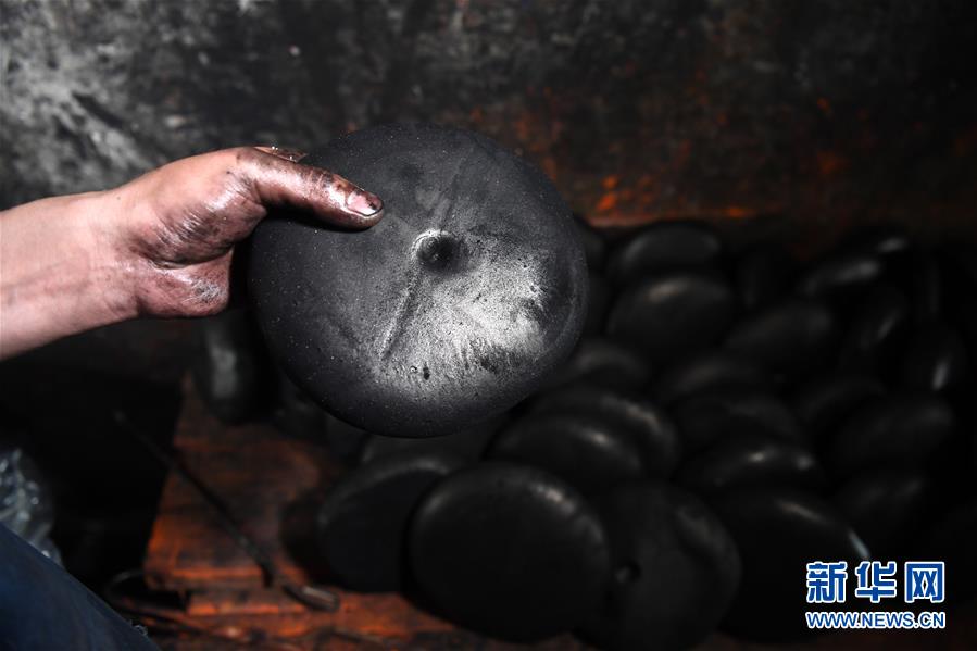 5月21日,安徽省非物質文化遺產徽墨代表性傳承人項德勝在進行古法煉煙。傳統(tǒng)徽墨制作工藝中,第一道工序就是煉煙。這一過程收集來的油煙是徽墨制作中最為重要的原材料。新華社記者張端攝。
