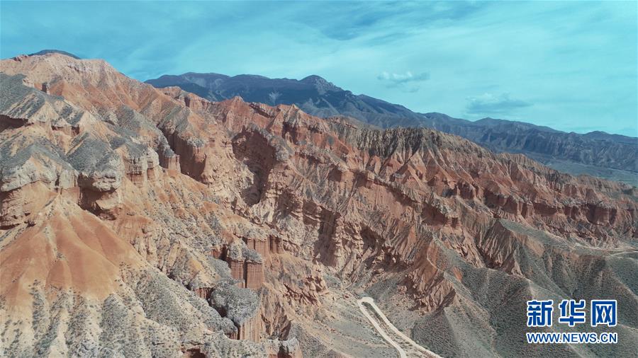 這是6月5日拍攝的位于青海省海南藏族自治州貴德縣境內(nèi)的丹霞地貌(無(wú)人機(jī)照片)。在青海省海南藏族自治州貴德縣境內(nèi),色彩斑斕的丹霞地貌美如畫卷。新華社記者趙玉和攝。