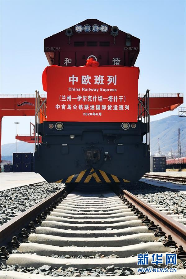 這是6月5日在甘肅蘭州國(guó)際陸港拍攝的準(zhǔn)備發(fā)車的“中吉烏”公鐵聯(lián)運(yùn)國(guó)際貨運(yùn)班列。新華社記者范培珅攝。