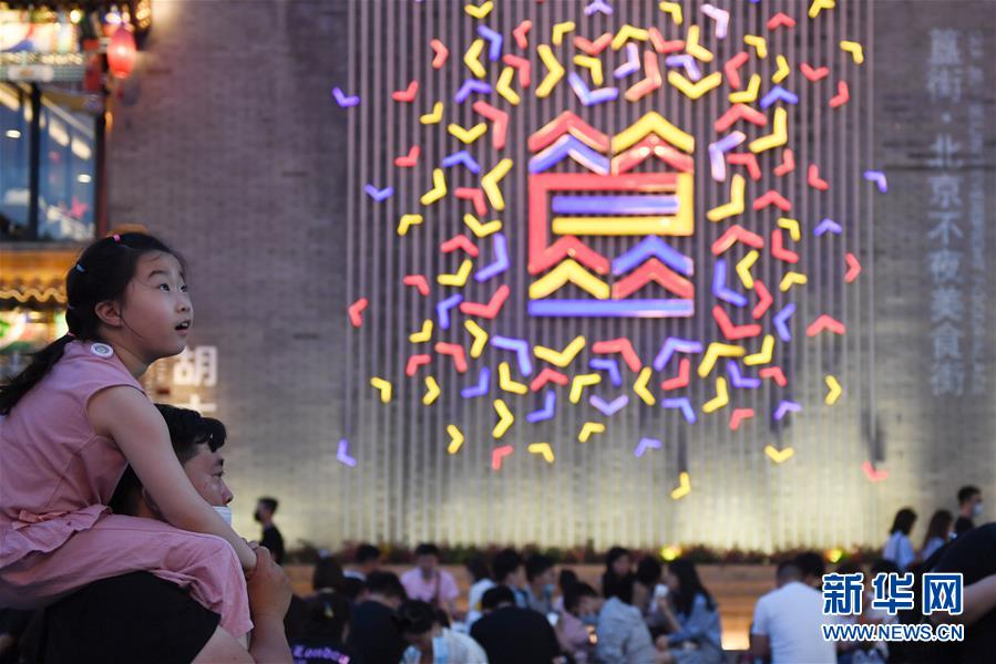 6月6日傍晚時分,一位小朋友和家長在簋街排隊(duì)等候就餐。6月6日晚,北京79個地標(biāo)、商圈、特色街區(qū)同時點(diǎn)亮夜京城,營造消費(fèi)氛圍,北京“夜經(jīng)濟(jì)”也加速回暖。新華社記者鞠煥宗攝