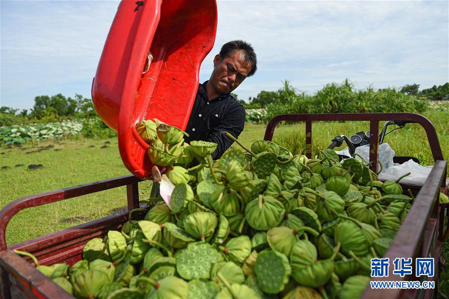 6月9日,村民在海口龍華區(qū)龍泉鎮(zhèn)椰子頭村裝運(yùn)采摘的蓮蓬。初夏時(shí)節(jié),位于海南??邶埲A區(qū)龍泉鎮(zhèn)的蓮蓬逐漸成熟,當(dāng)?shù)卮迕窦泳o采摘,一派繁忙景象。新華社記者蒲曉旭攝