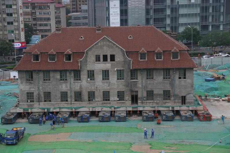 山東濟(jì)南2600噸百年修女樓坐“車”準(zhǔn)備平移