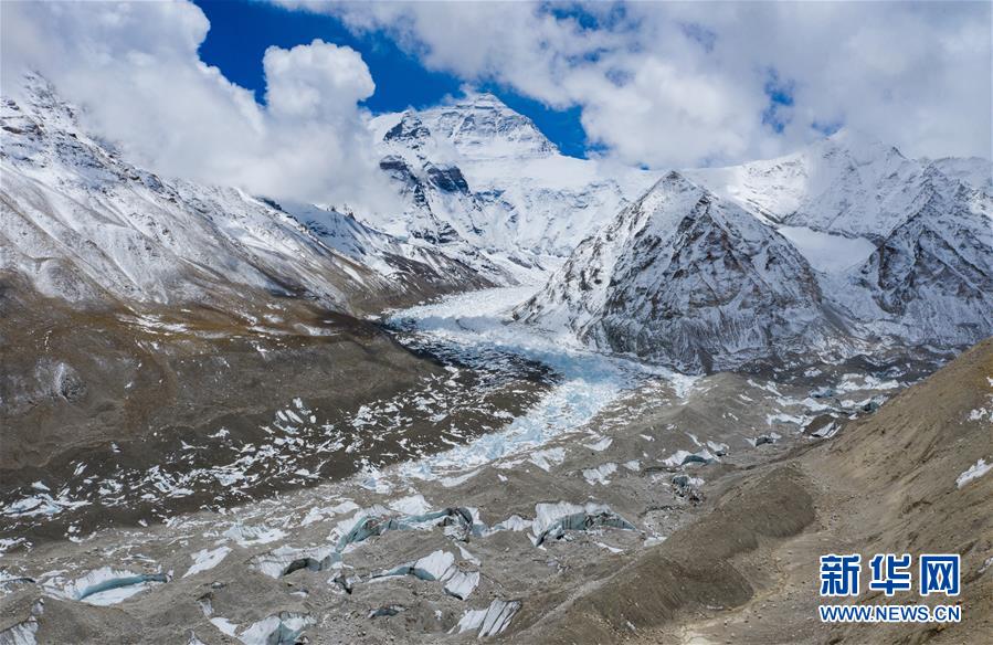 這是珠峰腳下的絨布冰川(無人機(jī)照片,4月30日攝)。從空中俯瞰珠穆朗瑪峰北坡,生機(jī)勃勃的高原濕地、蜿蜒曲折的盤山公路、壯麗秀美的絨布冰川,還有安靜的村莊和熱鬧的登山營(yíng)地,共同構(gòu)成一幅壯美畫卷。新華社記者普布扎西攝