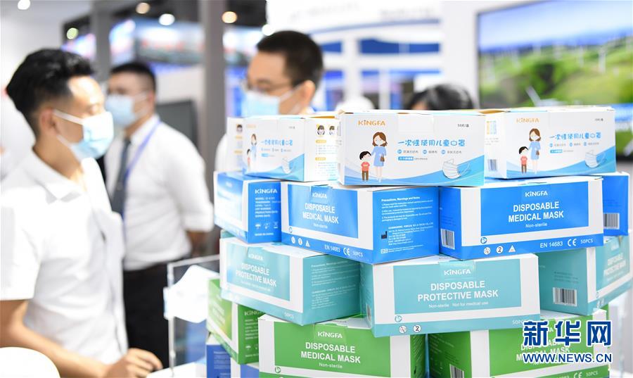 6月10日拍攝的展會上的口罩生產(chǎn)商展位。當日,廣州國際防疫物資展覽會在保利世貿(mào)博覽館舉行。本次展會面積共計3.6萬平方米,設有防疫產(chǎn)品、設備、綜合服務、原輔料等4個展區(qū),參展企業(yè)約600家。新華社記者鄧華攝