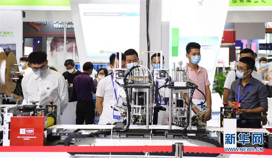 6月10日,觀眾參觀展會(huì)上的一臺(tái)口罩生產(chǎn)設(shè)備。當(dāng)日,廣州國(guó)際防疫物資展覽會(huì)在保利世貿(mào)博覽館舉行。本次展會(huì)面積共計(jì)3.6萬(wàn)平方米,設(shè)有防疫產(chǎn)品、設(shè)備、綜合服務(wù)、原輔料等4個(gè)展區(qū),參展企業(yè)約600家。新華社記者鄧華攝