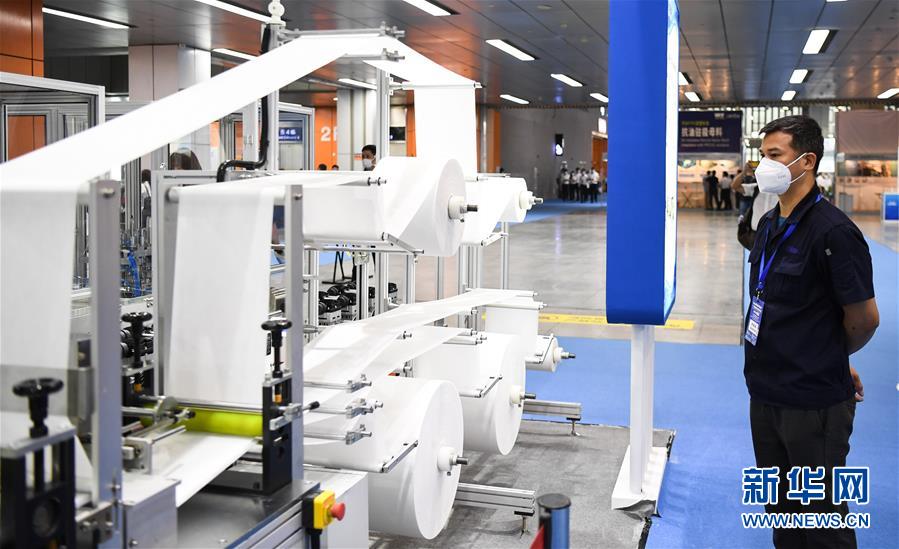 6月10日拍攝的展會(huì)上的一臺(tái)口罩生產(chǎn)設(shè)備。當(dāng)日,廣州國(guó)際防疫物資展覽會(huì)在保利世貿(mào)博覽館舉行。本次展會(huì)面積共計(jì)3.6萬(wàn)平方米,設(shè)有防疫產(chǎn)品、設(shè)備、綜合服務(wù)、原輔料等4個(gè)展區(qū),參展企業(yè)約600家。新華社記者鄧華攝