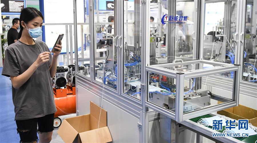 6月10日,觀眾拍攝展會(huì)上的一臺(tái)口罩生產(chǎn)設(shè)備。當(dāng)日,廣州國際防疫物資展覽會(huì)在保利世貿(mào)博覽館舉行。本次展會(huì)面積共計(jì)3.6萬平方米,設(shè)有防疫產(chǎn)品、設(shè)備、綜合服務(wù)、原輔料等4個(gè)展區(qū),參展企業(yè)約600家。新華社記者鄧華攝