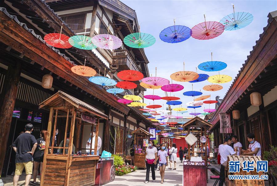 6月13日,市民在長春市世茂蓮花山小鎮(zhèn)寬厚里商街參觀游覽。當(dāng)日是“文化和自然遺產(chǎn)日”。吉林長春首屆蓮花山消夏生活節(jié)在世茂蓮花山小鎮(zhèn)舉行。活動將非遺展示與假日消暑休閑相結(jié)合,讓游人在“古色古香”的油紙傘巷中品傳統(tǒng)文化魅力,享夏日休閑愜意。新華社記者許暢攝。