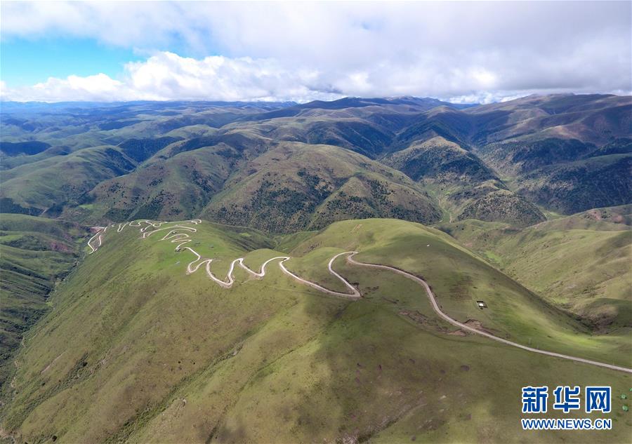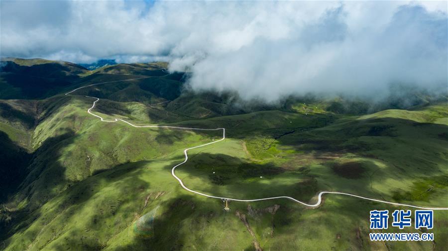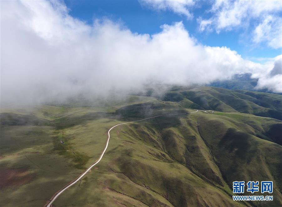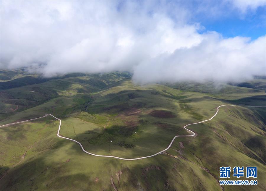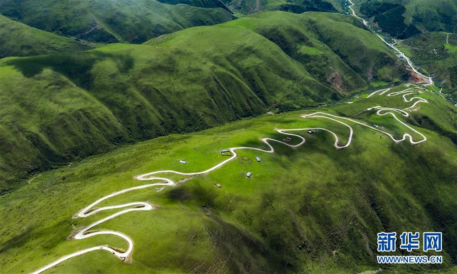這是6月13日無人機(jī)航拍的“上南天路”和路邊的牧民居所。居住在路邊的牧民,因?yàn)橛辛诉@條路,出行更加方便。新華社記者 沈伯韓 攝