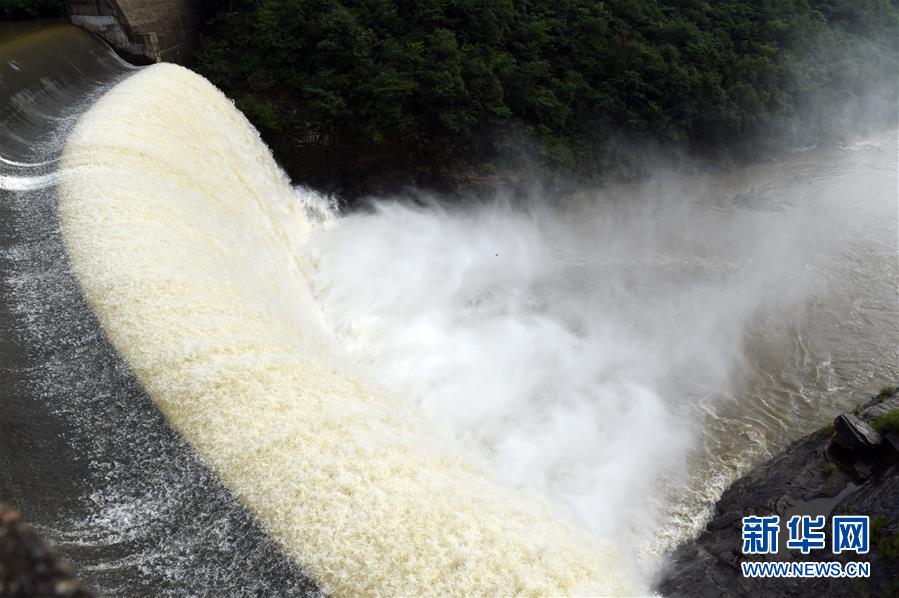 6月16日,位于安徽省金寨縣的青山水庫在進行泄洪。新華社記者 周牧 攝