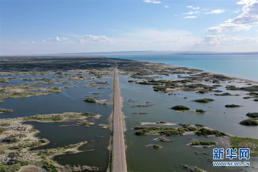 6月18日拍攝的新疆烏倫古湖國(guó)家濕地公園(無(wú)人機(jī)照片)。烏倫古湖國(guó)家濕地公園位于新疆阿勒泰地區(qū)福??h城以西,由烏倫古湖和吉力湖兩部分組成。烏倫古湖濕地公園是遷徙候鳥(niǎo)飛越天山和阿爾泰山的“能量補(bǔ)充站”,良好的濕地生態(tài)吸引著大量遷徙鳥(niǎo)類在此集結(jié)成群,繁殖棲息,成為一道靚麗的風(fēng)景線。新華社記者 沙達(dá)提 攝