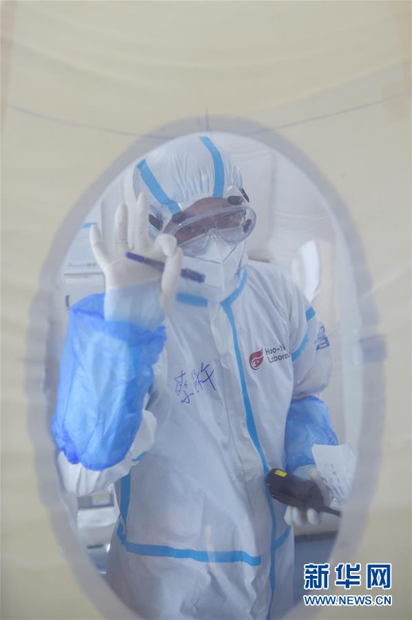 6月22日拍攝的建在北京大興體育中心綜合館的氣膜版“火眼”核酸檢測(cè)實(shí)驗(yàn)室。新華社記者彭子洋攝
