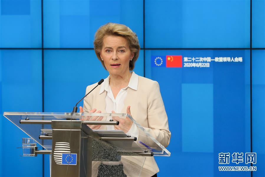 6月22日,歐盟委員會(huì)主席馮德萊恩在位于比利時(shí)布魯塞爾的歐盟總部出席第二十二次中國-歐盟領(lǐng)導(dǎo)人會(huì)晤后舉行的新聞發(fā)布會(huì)。