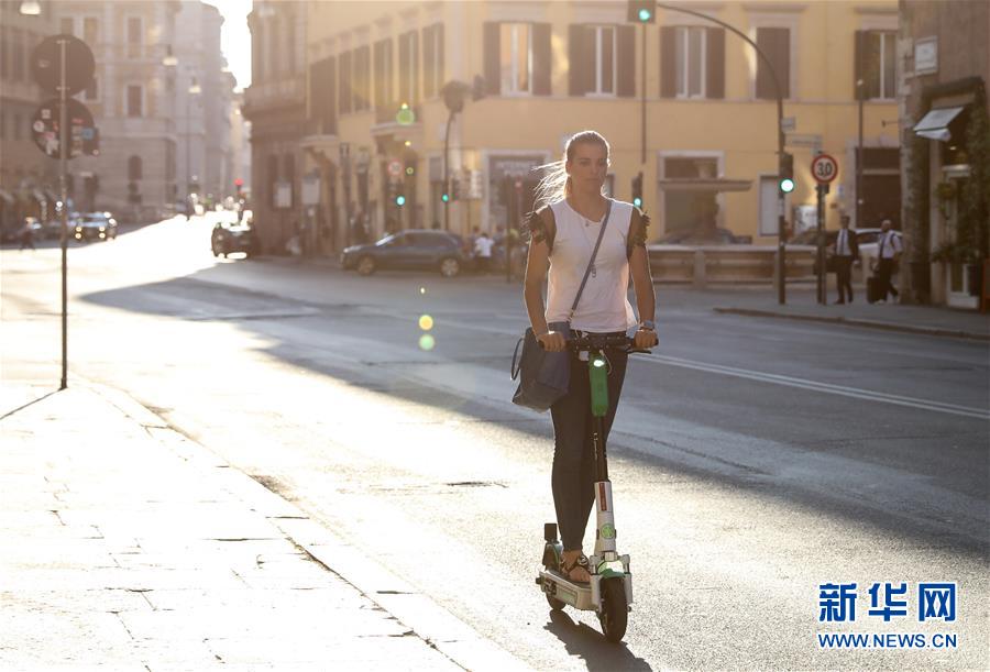 6月23日,在意大利首都羅馬,一名女子騎著電動(dòng)踏板車在城市中穿行。隨著意大利新冠疫情繼續(xù)緩解,城市的街道上也逐漸恢復(fù)了往日的喧鬧。由于體積小、易于使用,電動(dòng)踏板車迅速成為了人們城市短途出行的首選。新華社記者程婷婷攝