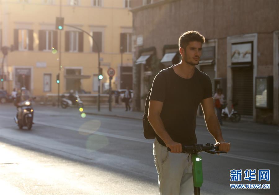 6月23日,在意大利首都羅馬,一名男子騎著電動(dòng)踏板車(chē)在城市中穿行。新華社記者程婷婷攝