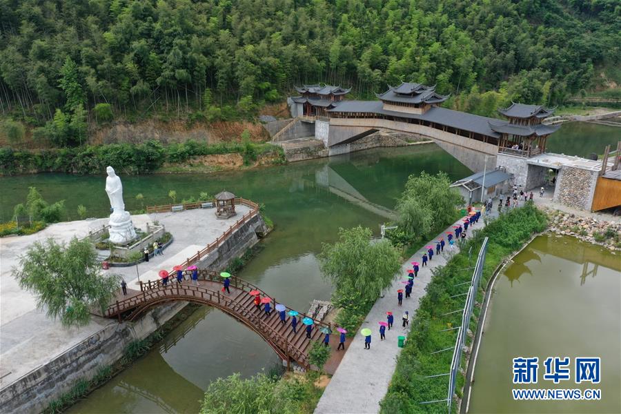 6月24日,福建政和縣外屯鄉(xiāng)群眾在湖屯村舉行走橋活動(dòng)(無人機(jī)照片)。當(dāng)日,福建省政和縣舉行第三屆中國·屯福橋端午民俗文化節(jié)。端午節(jié)臨近,各地舉行包粽子、做香包、賽龍舟等豐富多彩的民俗文化活動(dòng),迎接傳統(tǒng)佳節(jié)的到來。新華社記者林善傳攝