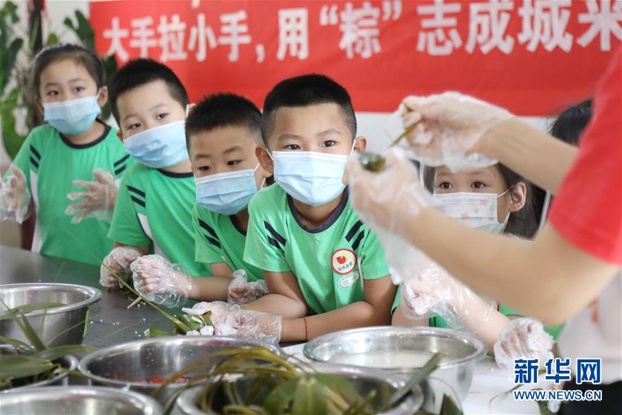6月24日,在河北省廊坊市安次區(qū)西小街社區(qū)活動(dòng)中心,孩子們學(xué)習(xí)包粽子。端午節(jié)臨近,各地舉行包粽子、做香包、賽龍舟等豐富多彩的民俗文化活動(dòng),迎接傳統(tǒng)佳節(jié)的到來。新華社記者王曉攝