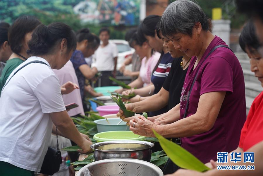 6月24日,南昌市灣里區(qū)站前街道文明北路社區(qū)的居民在廣場上參加包粽子比賽。端午節(jié)臨近,各地舉行包粽子、做香包、賽龍舟等豐富多彩的民俗文化活動,迎接傳統(tǒng)佳節(jié)的到來。新華社記者萬象攝