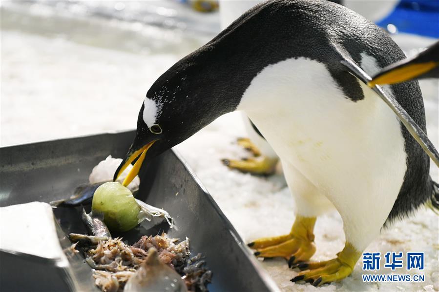 6月24日,哈爾濱極地館的企鵝在品嘗“魚粽”。當(dāng)日,哈爾濱極地館的工作人員特地準(zhǔn)備了“魚粽”“肉粽”,讓生活在這里的極地動(dòng)物也品嘗一下端午美食。新華社記者王建威攝
