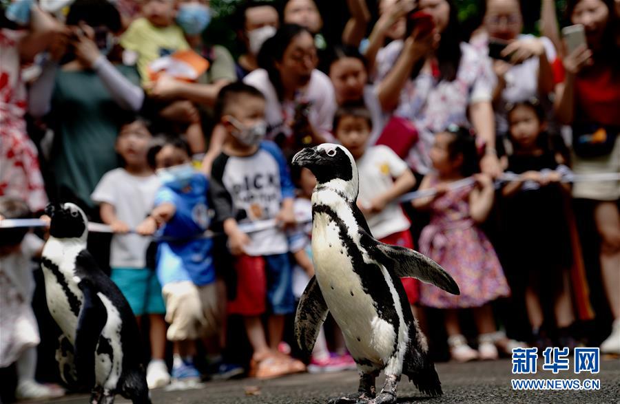 6月26日,上海動物園的企鵝在園內(nèi)漫步。新華社記者 張建松 攝