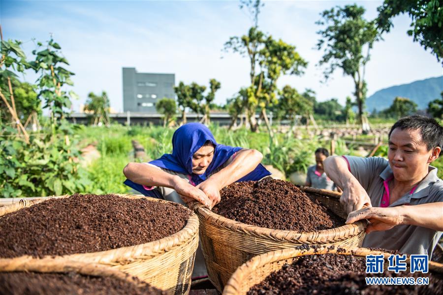 6月26日,工人在曾氏曬醋廠搬運(yùn)醋醅。新華社記者 陶亮 攝