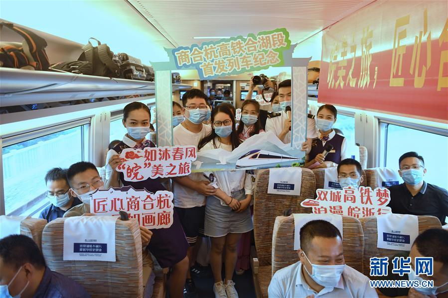 6月28日,在合肥南站,合肥客運段工作人員和旅客在合肥南至杭州東的G9394次列車上合影。新華社記者劉軍喜攝