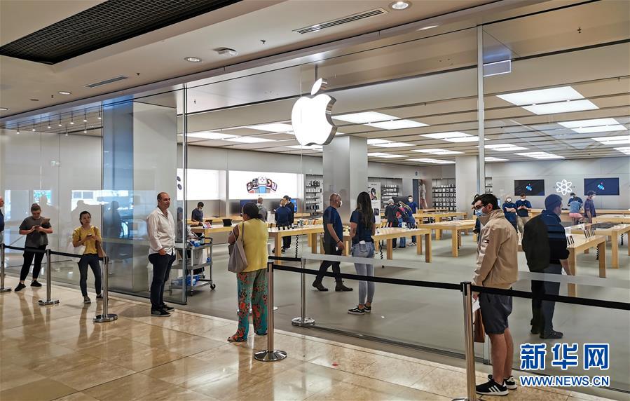 5月8日,在澳大利亞悉尼一家商場(chǎng),顧客在重新?tīng)I(yíng)業(yè)的蘋果專賣店外排隊(duì)。新華社記者白雪飛攝