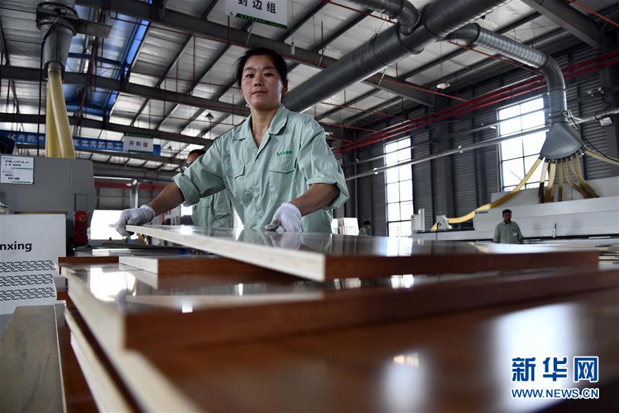 6月30日,在費(fèi)縣云峰莫干山裝飾材料有限公司,工人在加工定制家具面板。地處沂蒙革命老區(qū)的山東省臨沂市費(fèi)縣探沂鎮(zhèn)近年來圍繞鄉(xiāng)村振興戰(zhàn)略,謀劃“一鎮(zhèn)一業(yè)”,以木業(yè)產(chǎn)業(yè)為抓手,積極引導(dǎo)全鎮(zhèn)3136家木業(yè)企業(yè)進(jìn)行園區(qū)化、集約化、智能化發(fā)展,成為遠(yuǎn)近聞名的“木業(yè)特色小鎮(zhèn)”。2019年,該鎮(zhèn)規(guī)模以上工業(yè)總產(chǎn)值187億元,農(nóng)民人均純收入2萬元左右,木業(yè)產(chǎn)業(yè)有力助推當(dāng)?shù)氐泥l(xiāng)村振興。新華社記者郭緒雷攝
