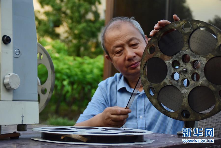 6月30日,朱生榮在當晚電影開播前將膠片調(diào)至起始幀。新華社記者鄭夢雨攝