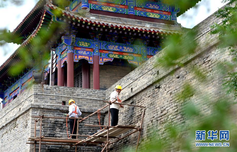 7月2日,工作人員在永年廣府古城修繕城墻。經國家文物局和河北省文物局批準,河北永年廣府古城修繕工程已全面啟動。在文物專家全程參與下,按照“不改變文物原狀”原則進行修繕,預計2021年4月底完工。永年廣府古城擁有華北地區(qū)保存最完整的古城墻,現(xiàn)為全國重點文物保護單位。新華社記者王曉攝