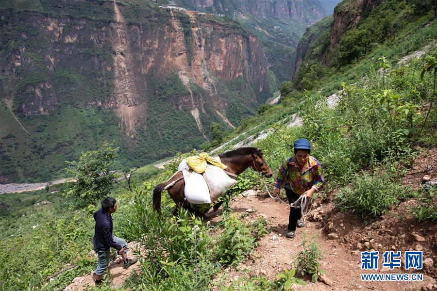 且沙次干、阿達么日雜夫婦倆趕著馬,馱著糧食、家什,準備搬進村集中安置點的新居(6月27日攝)。新華社記者 江宏景 攝