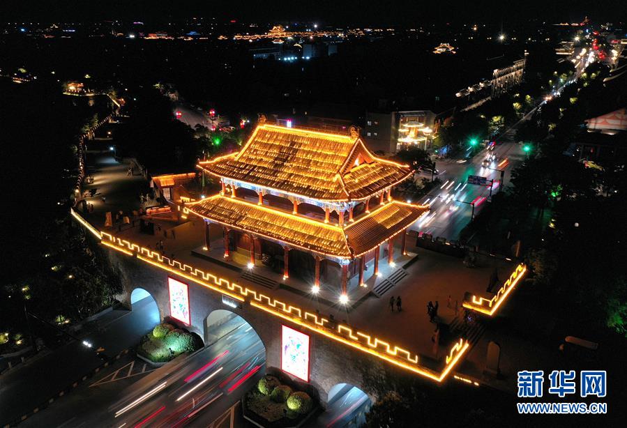 這是6月1日拍攝的河南開(kāi)封鼓樓夜市(無(wú)人機(jī)照片)。新華社記者 李安 攝