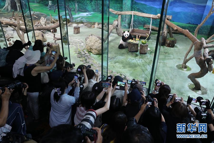 7月6日,參觀者在臺北市立動物園拍攝大熊貓“圓仔”。當(dāng)日,臺北市立動物園為大陸贈臺大熊貓“團(tuán)團(tuán)”“圓圓”的孩子“圓仔”慶祝7周歲生日。新華社記者祁星攝