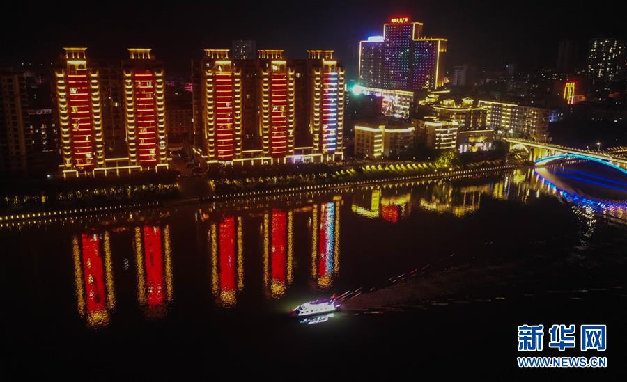 這是融安縣城夜色(7月7日攝,無人機照片)。夏夜的廣西融安縣城燈火璀璨,景色迷人。新華社記者張愛林攝