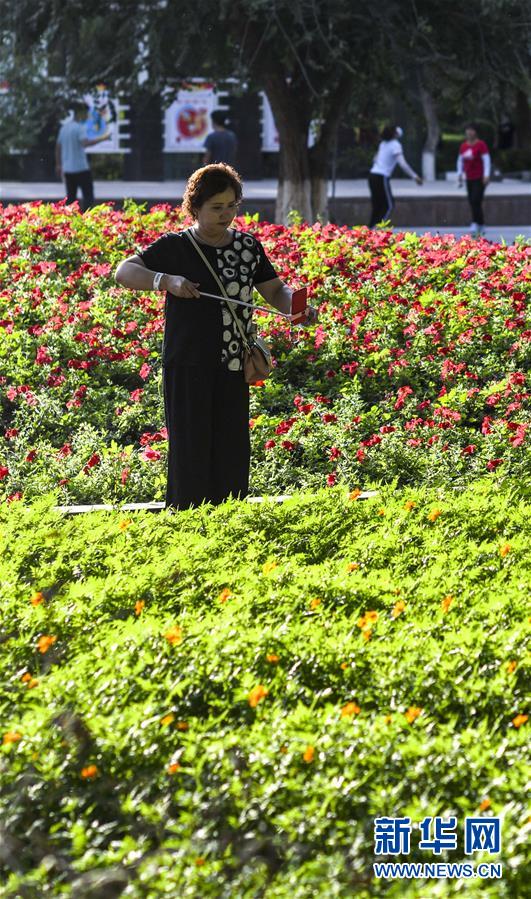 一名市民準(zhǔn)備在烏魯木齊人民公園拍照(7月5日攝)。新華社記者趙戈攝