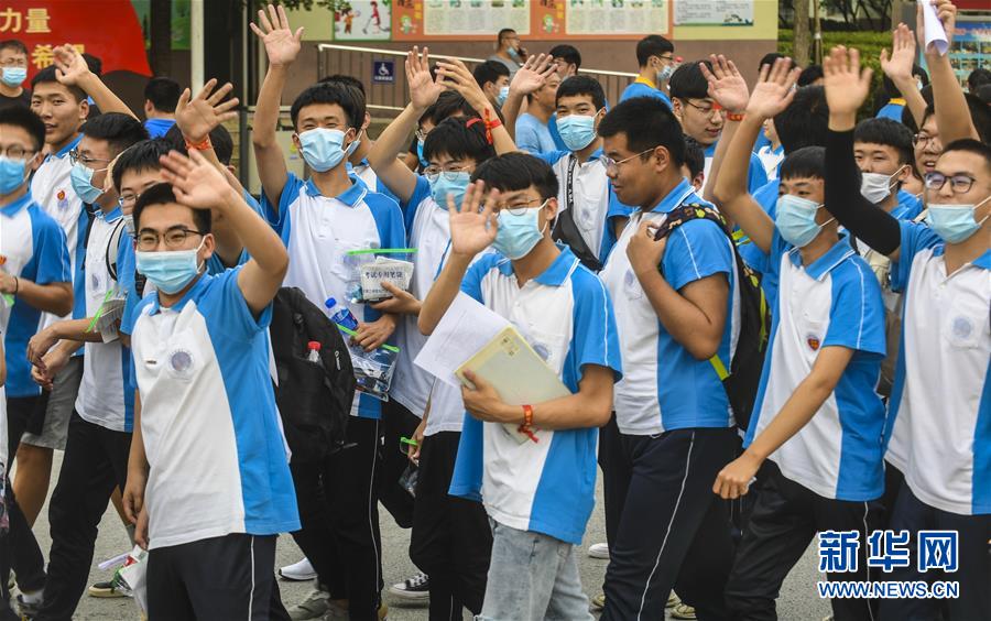 7月8日,在福建省福州教育學院附屬中學考點,考生和同學揮手告別。當日,全國部分地區(qū)2020年高考結(jié)束。新華社記者宋為偉攝