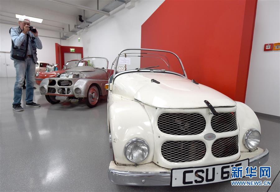 7月8日,一名男子在奧地利弗森多夫舉行的“迷你”老爺車展上拍攝。新華社記者郭晨攝