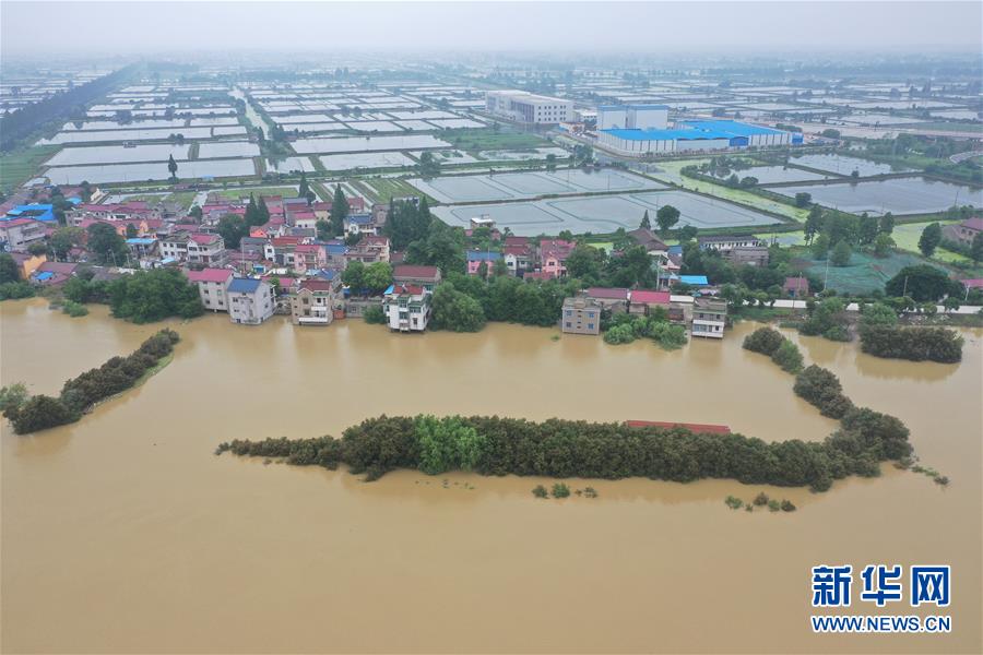 7月9日拍攝的水陽江南京高淳段(無人機照片)。入梅以來,江蘇省南京市高淳區(qū)多次遭受強降雨,加上上游來水量大,截至7月9日8時,高淳境內(nèi)水陽江水碧橋水位達到13.01米,超警戒水位2.51米。7月7日水陽江區(qū)域已啟動防汛應急Ⅰ級響應。高淳區(qū)在水陽江區(qū)域堤防沿線設立241個防汛值守點,實施24小時值班值守。新華社記者季春鵬攝