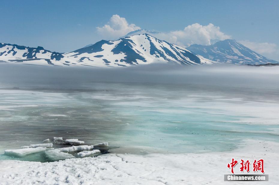 當?shù)貢r間2020年7月7日,俄羅斯堪察加半島,Gorely火山附近的Sredinnoye火山湖。這個湖斷斷續(xù)續(xù)的,是6月底到8月初融雪形成的。圖片來源:視覺中國